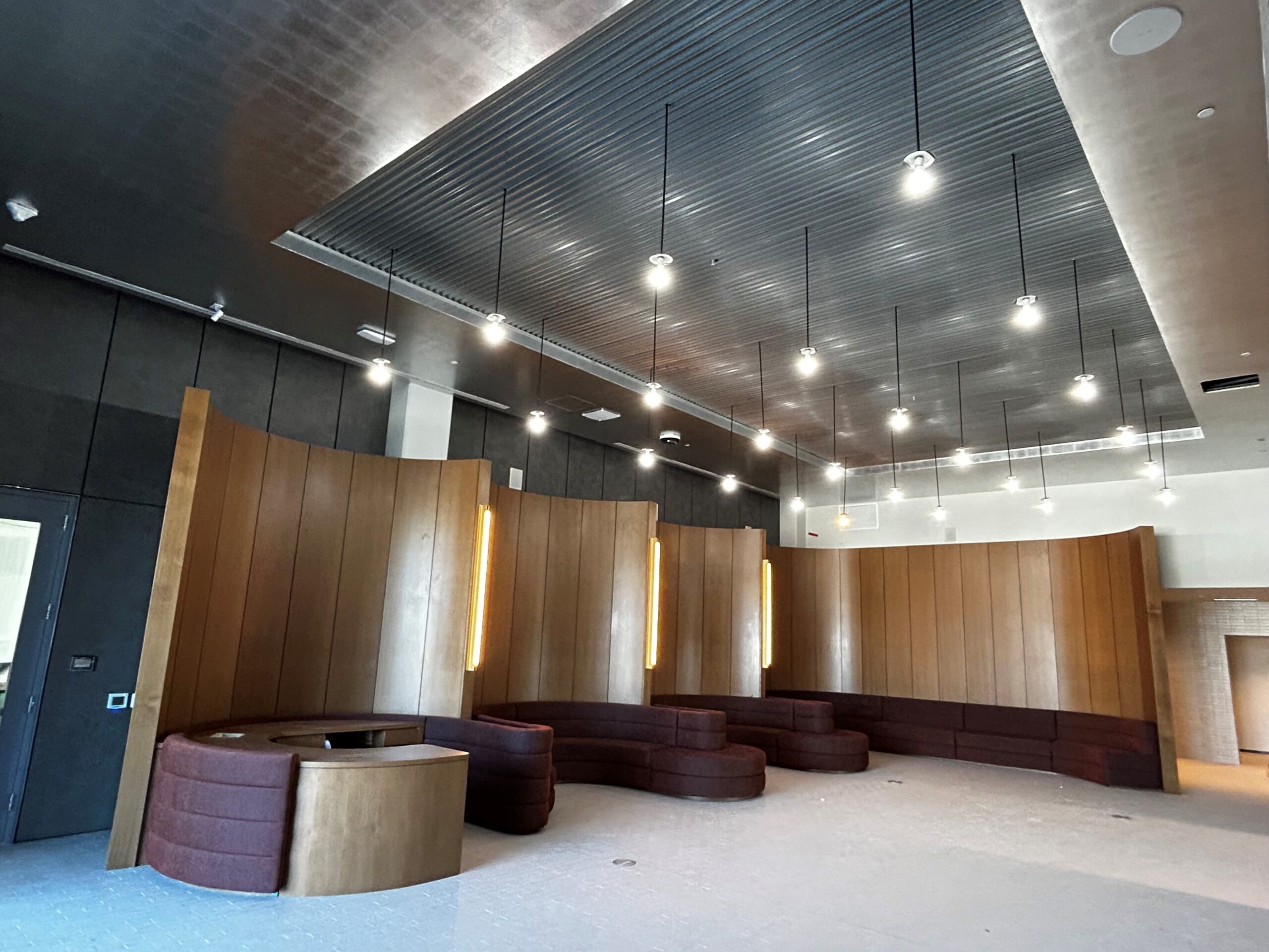J&J Acoustics was fortunate to partner with Devcon Construction on three out of the four buildings on the Elco Yard campus. Building C, ‘The Nest’, was 4 stories with 2 levels of below grade parking core & shell project that included a detached ‘Sawtooth’ structure for open office space. Building E North, ‘The Loft’, and E South, ‘The Mill’, were both 4 stories with 2 levels of below grade parking core & shell project that included a detached structure, ‘The Shed’, for a future restaurant. J&J Acoustics provided exterior substrate, green girt, and Dow DefendAir weather barrier for all metal panel, plaster, and Parklex Prodema wood finishes.