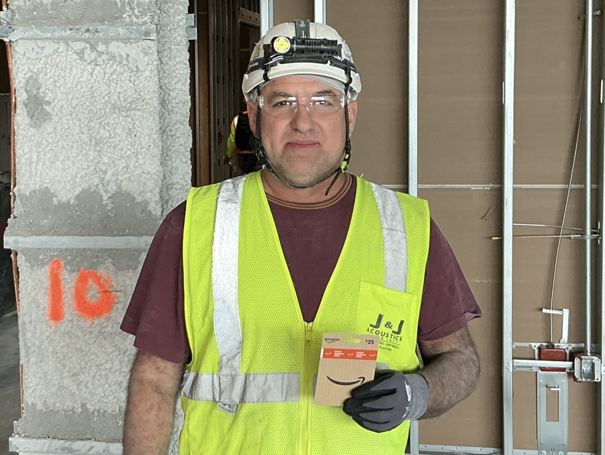 J&J Acoustics is proud to recognize Francisco Villegas for the employee safety recognition for the week. Francisco comes to work with a positive attitude and a willingness to help others, and he’s always keeping an eye out for any hazards around the job site.