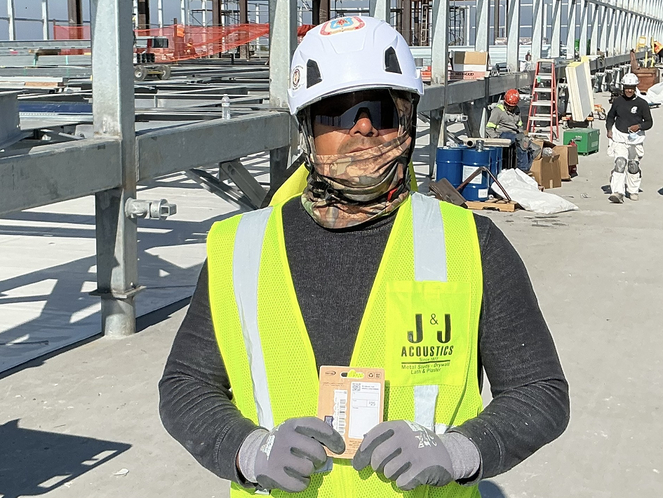 J&J Acoustics is proud to recognize Martin Gutierrez for the employee safety recognition for the week. Martin starts his shift with a positive attitude, making sure he has all the necessary PPE before using the chop saw. He also sets a great example by fully embracing the new helmet policy.